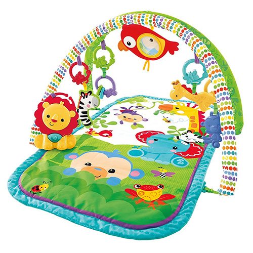 Thảm chơi rừng nhiệt đới Fisher Price dành cho bé sơ sinh nằm chơi, thảm có nhạc cùng với các món đồ chơi như sư tử, khỉ, vẹt được treo lúc lắc rất bắt mắt, mẹ có thể đặt bé nằm chơi trong khi bận công việc. Thảm có gương soi có thể phản chiếu hình ảnh giúp cho bé cảm thấy rất thích thú. Bé chạm vào 1 chân chú sư tử con là có thể kích hoạt và khám phá các đoạn nhạc ngắn vui nhộn và đặc sắc.