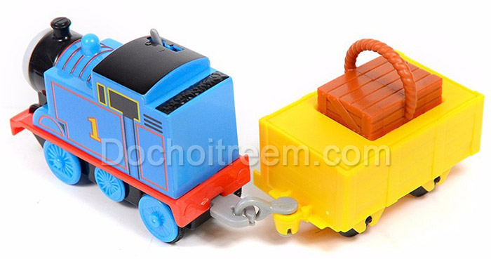 Bộ sản phẩm có một đầu tàu xe lử có pin – dòng motorized railway – kéo theo là một thùng hàng cần chú vận chuyển đến nơi cần dùng . Chiếc xe màu canh dương có in sô 1 màu vàng lên thật dễ thương trên nóc xe có một cần gặt để bé có thể bật tắt điều khiển cho xe chạy hay ngừng lại . Đằng sau toa tàu kéo theo 1 toa màu vàng chói rực rỡ thu hút ánh nhìn của bé.