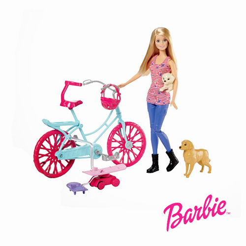 Búp bê barbie dạo phố cùng thú cưng năng động