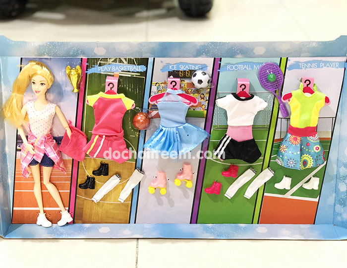Búp bê trang phục thể thao giày, vớ, vợt, bóng BLD122