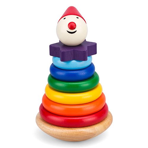 Đồ chơi bằng gỗ Cầu vồng chú hề mang đến cho bé một chú hề ngộ nghĩnh, luôn vui vẻ tươi cười, nó còn có thể lắc lư như đang múa hát, đứa các bé đến với một thế giới đầy màu sắc. Trang phục tô điểm cho chú hề là những vòng tròn 7 sắc cầu vồng gồm: đỏ, cam, vàng, lục, lam, chàm, tím với các vòng tròn được sắp xếp từ nhỏ đến lớn.