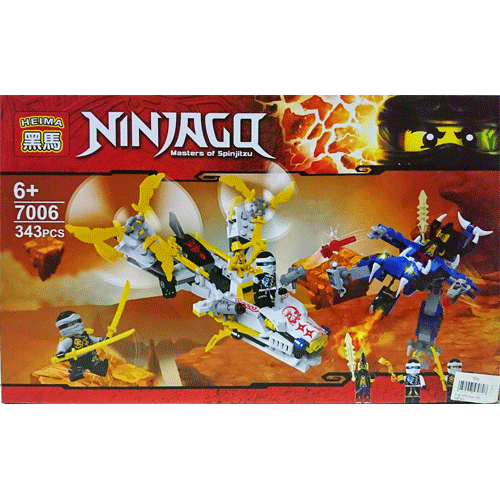 Bộ sản phẩm mang chủ đề ninja . Những cuộc đối đầu của các ninja chưa bao giờ kết thúc chính vì lẽ đó mà các môn phái ninja luôn phải chiến đấu luôn sáng tạo ra cho mình những vũ khí lợi hại nhất . Phương tiện chiến đấu lần này của các ninja đó chính là những chiếc máy bay .Những chiếc máy bay với thiết kế lạ mắt gây ấn tượng mạnh với các bé trai . Màu sắc của những chiếc máy bay ấy vô cùng bắt mắt , những họa tiết cũng vô cùng độc đáo , khiến ai cũng muốn sở hữu nó . Trong bộ còn có 3 nhân vật ninja đại diện cho những môn phái khác nhau .