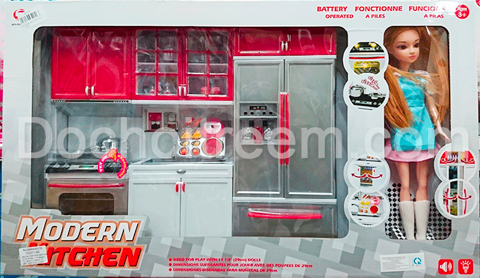 Bộ sản phẩm lần này là bộ nhà bếp có lò nuớng ,đặc biệt là có thêm một người bạn gái dễ thuơng là một cô búp bê xinh xắn . Màu chủ đạo của bếp là màu đỏ và xám ,với đầy đủ các thíêt bị tiêu dùng cho gia đình .