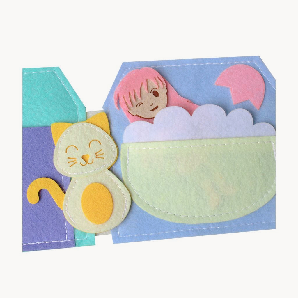 Bộ sách vải Ngôi nhà tí hon cho bé gái nói về những sinh hoạt trong một ngày của bé và có những không gian sinh hoạt thân thuộc với bé.