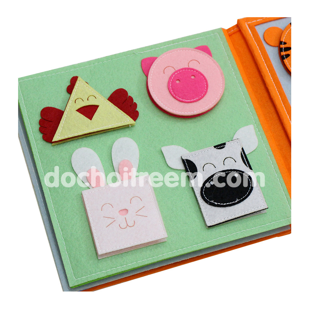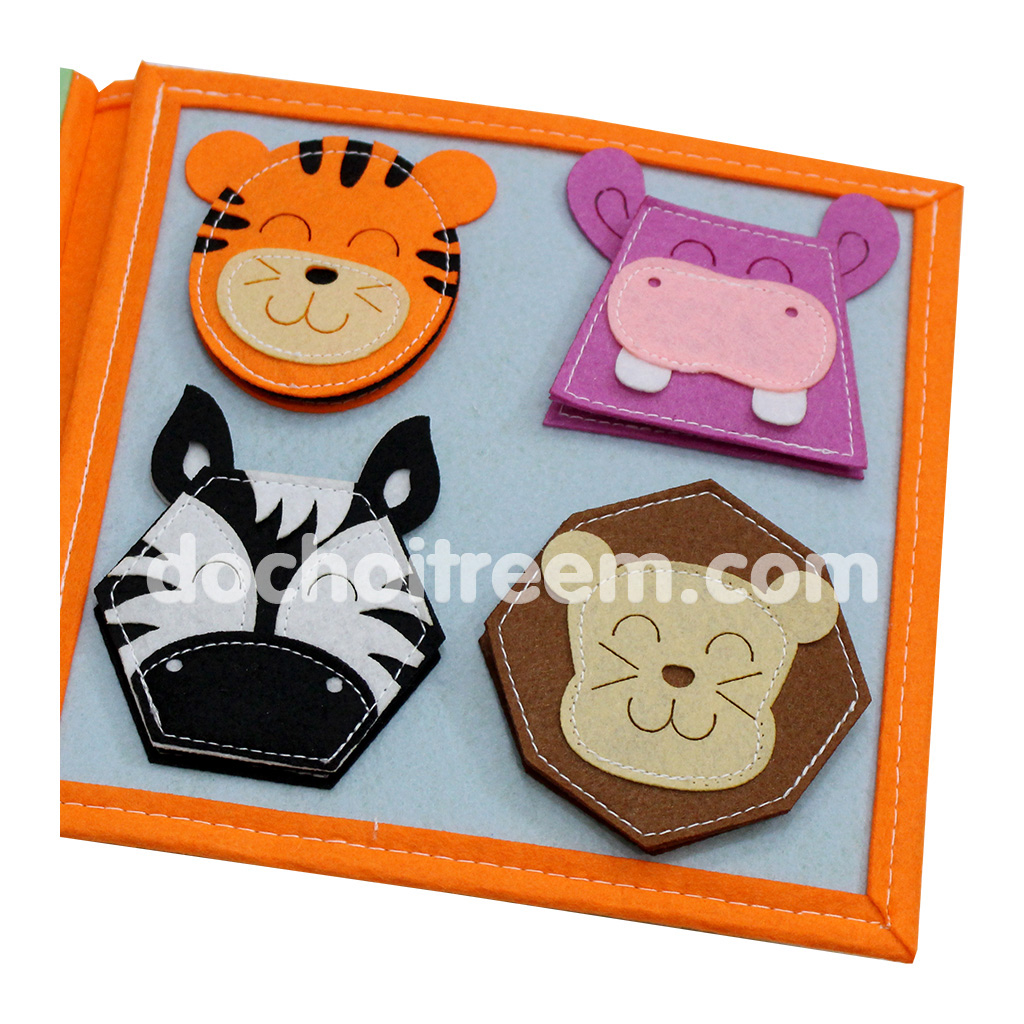 Ở mỗi trang sách sẽ có những ý nghĩa chơi khác nhau, chẳng hạn như: ráp nửa còn lại của các loại trái cây, gắn các mặt của con vật theo đúng hình dạng ( hình vuông, hình tròn, hình tam giác,…), gắn các con vật lên những quả trứng,…